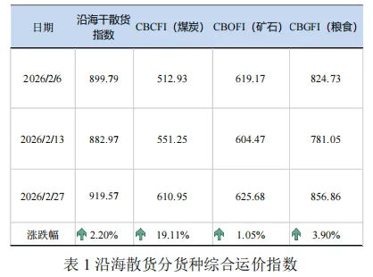 上海国际航运研究中心航运发展研究所发布《中国沿海干散货运输市场双周报(2026.02.07-2026.02.27)》。