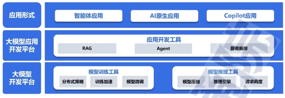 - 开发工具链:分布式训练框架(DeepSpeed、Megatron-LM)提升训练效率,推理优化技术(量化、剪枝)降低部署成本;