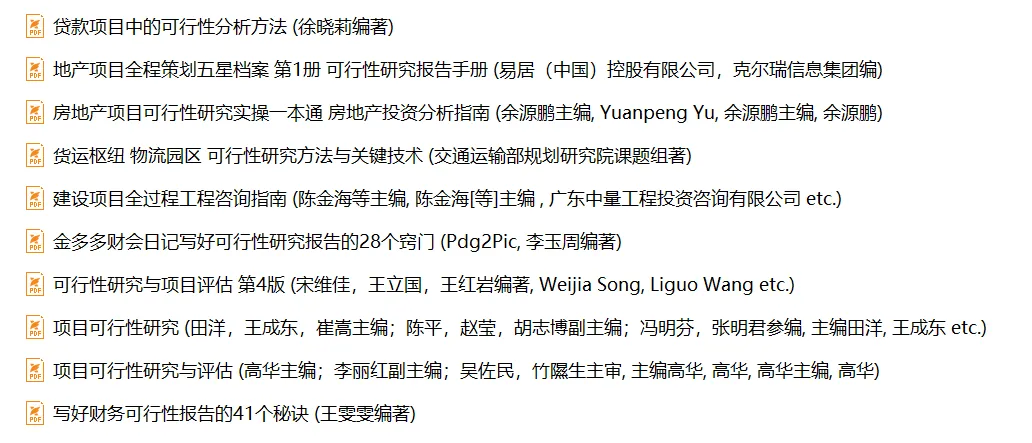 可行性研究报告书籍10本目录: