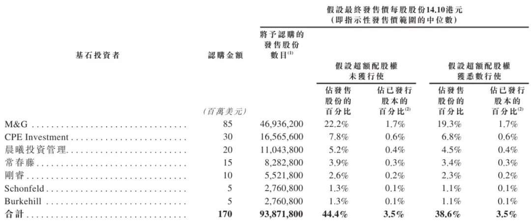 京东工业基石投资者分别为M&G、CPE Investment、晨曦投资管理、常春藤、刚睿、Schonfeld、Burkehill,一共认购1.7亿美元。