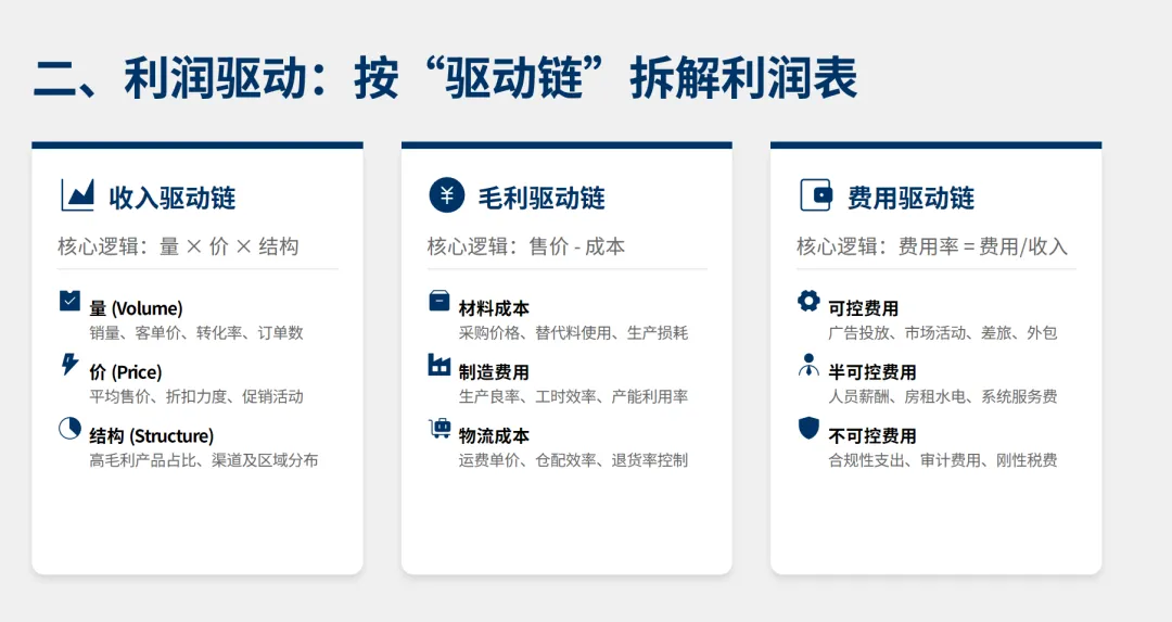 你只需要讲清3条利润驱动链: