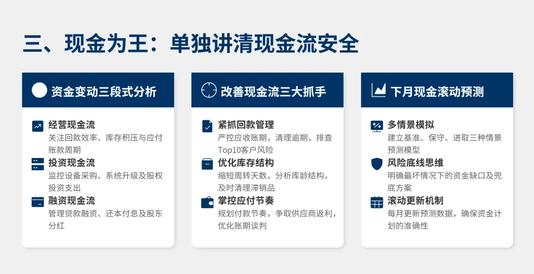 现金流汇报只讲3件事: