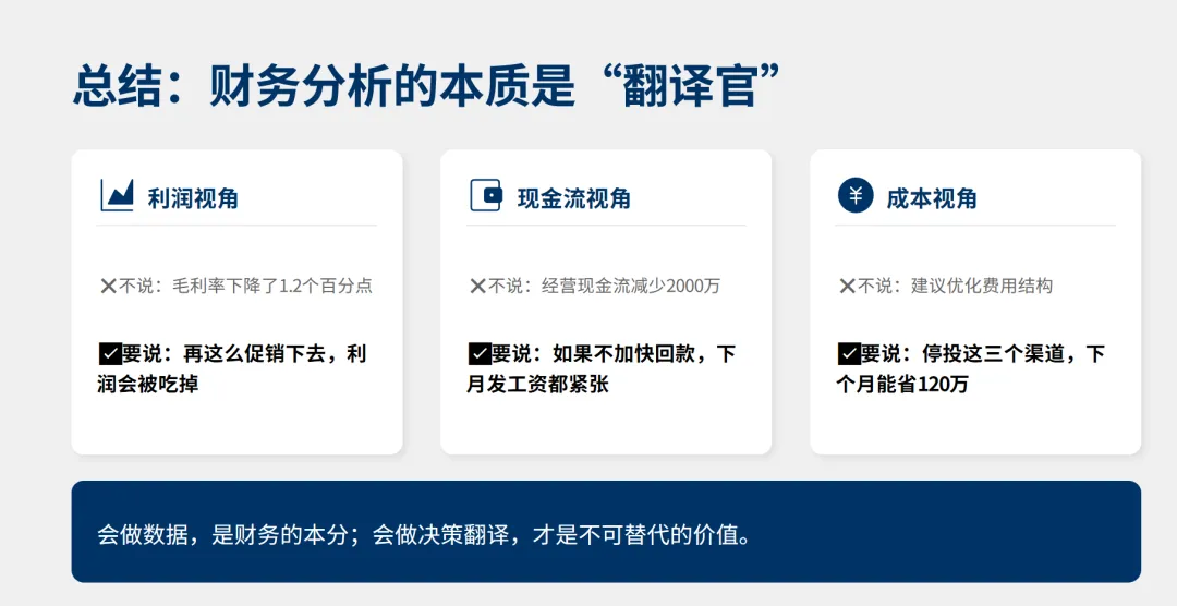 真正高阶的财务分析,从来不是算得准,而是讲得明白、落到动作。