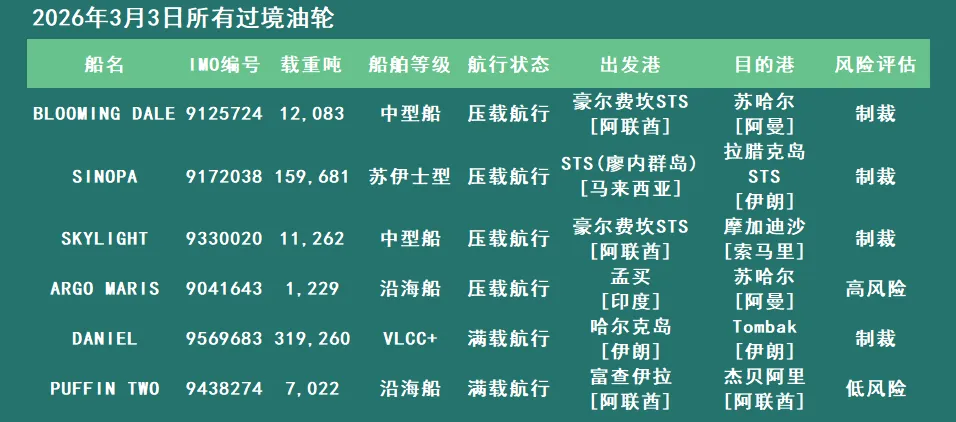 霍尔木兹海峡所有油轮通航情况