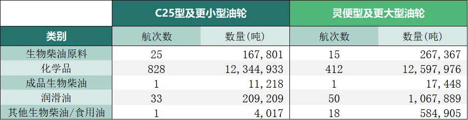 涉及的船舶类型主要包括大型化学品油轮、IMO II型灵便型/MR(略占多数)、J19/C25 型油轮及更小的中型油轮。