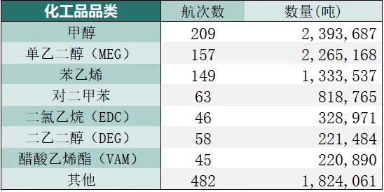 受冲击最严重的三大货物流向为:发往中国的单乙二醇、发往印度的甲醇和苯乙烯。