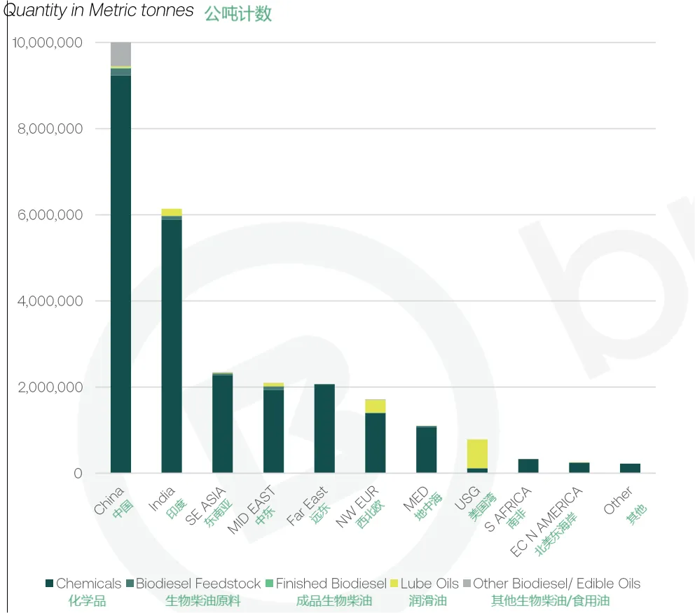 除阿拉伯湾本地外,受海湾航运停运影响最大的地区为中国和印度,2025 年两国分别占阿拉伯湾化学品出口量的 37% 和 24%。