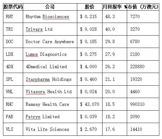 附:2月ASX涨幅前10医疗股