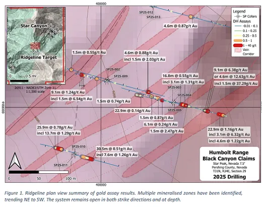 “Ridgeline和Star Canyon的钻探结果清晰表明,Black Canyon项目矿权地内存在大面积的矿化区域。”