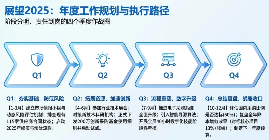 面向2025年,各项核心指标(销售额、毛利额等)全面要求对标24%的同比增长。为了支撑这个野心,采购部必须完成从“战术执行”到“战略操盘”的进化。我们接下来只打三场硬仗: