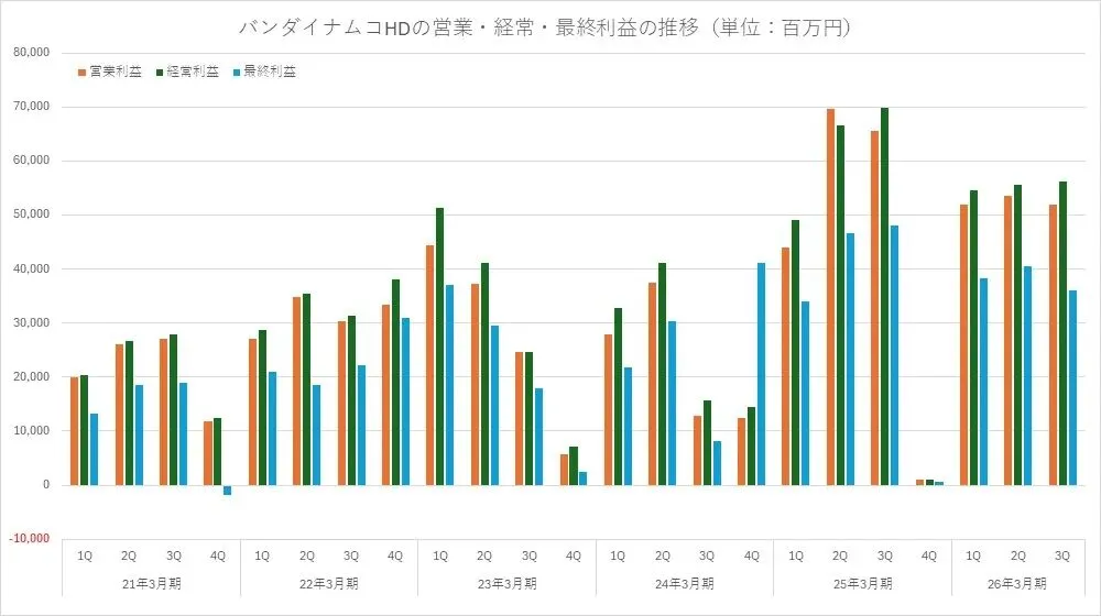 如果说卡普空是在游戏领域做深度的王者,那么万代南梦宫就是把IP做广度的教科书。作为六大厂商中唯一一家前三季度销售额突破1万亿日元大关的巨无霸,万代南梦宫本期实现销售额1兆0022亿4300万日元,同比增长4.9%;但遗憾的是,营业利益1573亿9500万日元,同比减少12.2%,虽实现了销售额突破1兆日元的里程碑,却仍陷入了减益困境。