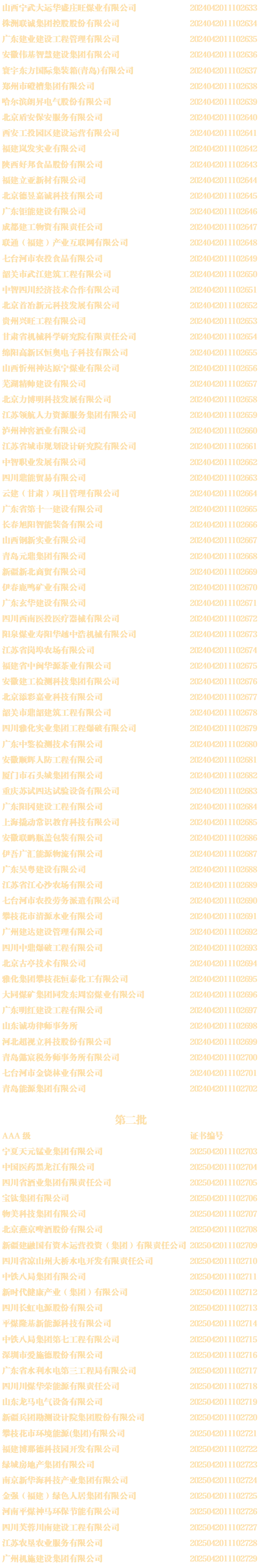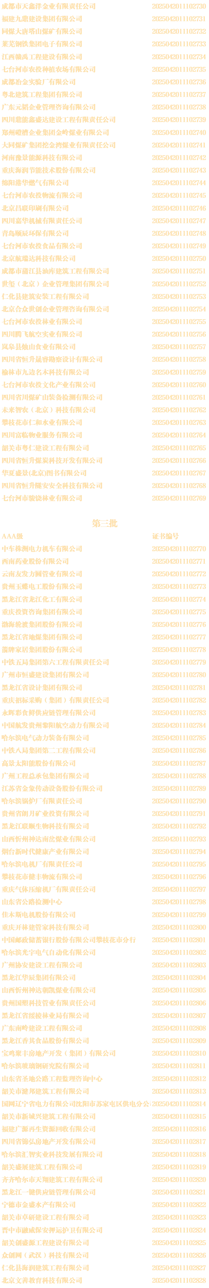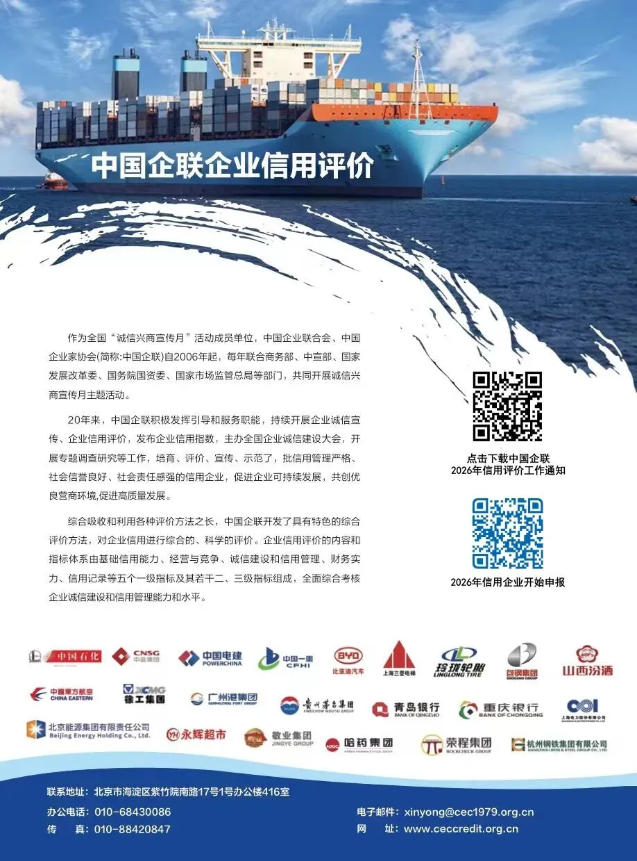 2025年,中国企业联合会、中国企业家协会(以下简称:中国企联)开展了三批企业信用评价工作。评价严格按照“申请→网上在线提交材料→评价→初审→终审→公示→备案→发证推介→年度复查→备案公示”的程序进行,采取网上在线全流程完成。信用评价指标科学完善,过程严谨细致,通过信息比对和多维度综合评价,经过专家严格审核和网上公示,最终确定294家AAA级企业。