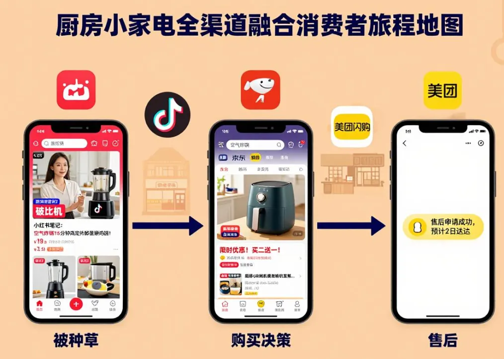 拥抱即时零售,重构“人货场”:与美团闪购、京东到家等平台建立深度合作,优化本地化库存和配送网络。针对即时性需求设计专属产品组合或套餐(如“空气炸锅+薯条半成品”组合),并利用平台的LBS推送进行精准营销。即时零售不仅是一个新渠道,更是品牌线下渗透和即时服务能力的试金石。