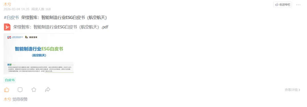 航空航天装备制造作为国之重器的核心载体,既是智能制造技术的前沿应用阵地,也是ESG理念落地的关键领域。本白皮书立足行业发展实际,梳理航空航天装备制造行业ESG发展现状,解读核心政策与关键议题,分享标杆企业实践经验,以期为行业高质量、可持续发展提供借鉴,助力中国航空航天在智造升级与ESG践行中,迈向更广阔的空天征程。