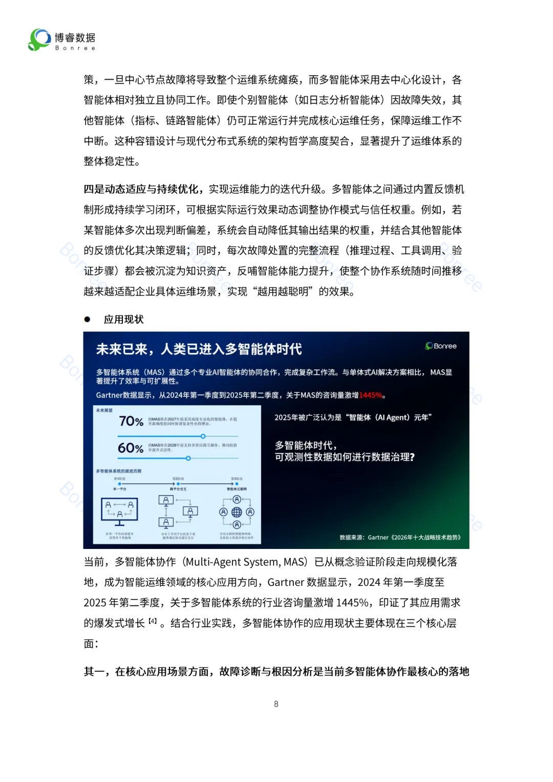 这本题为《智能体协同矩阵重塑自主运维新范式白皮书》的文件,是博睿数据发布的一份行业深度报告。它系统阐述了在云原生、微服务等技术背景下,传统运维模式面临的挑战,以及如何通过“多智能体协同”技术构建下一代自主运维体系的前瞻性构想与落地实践。