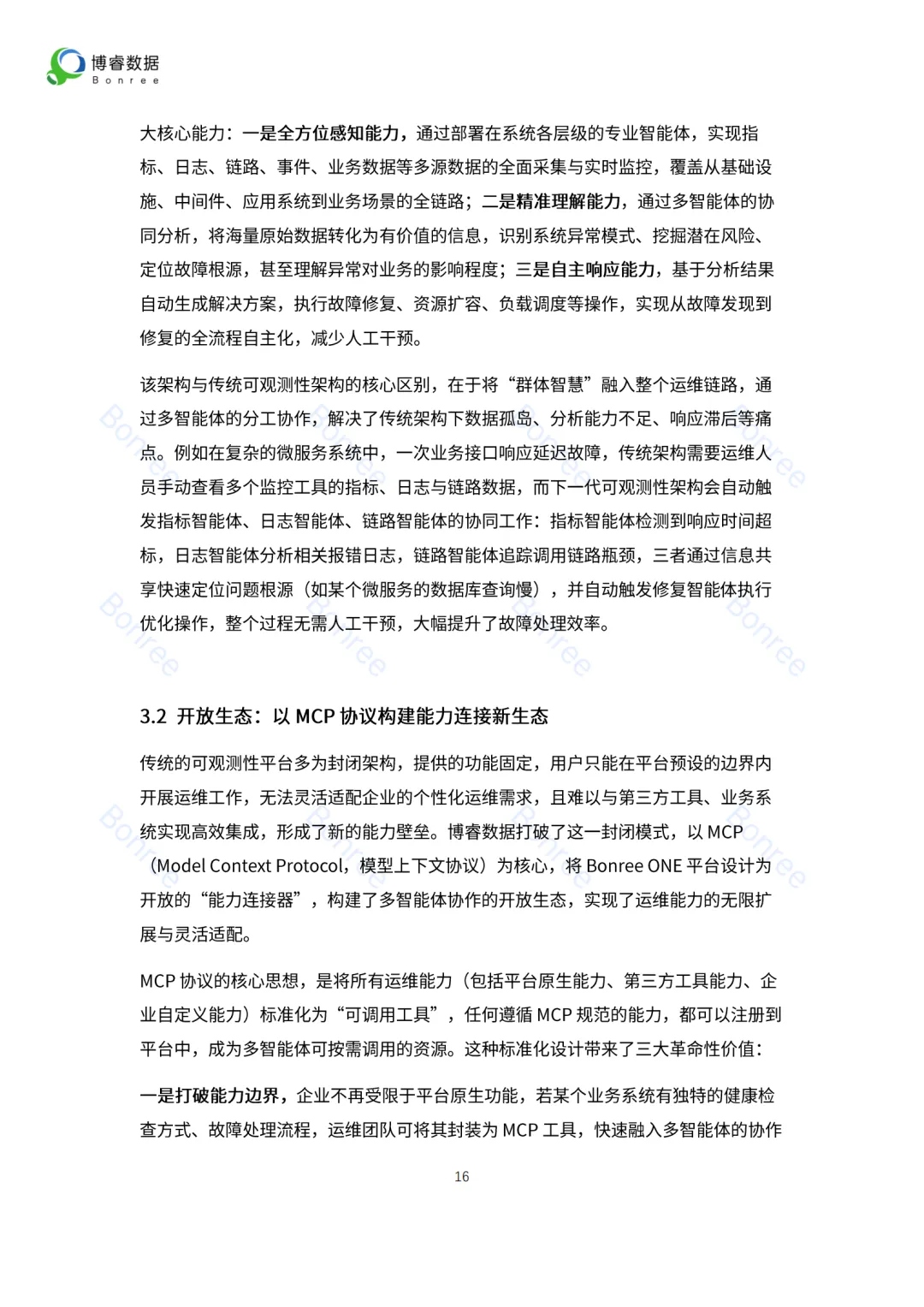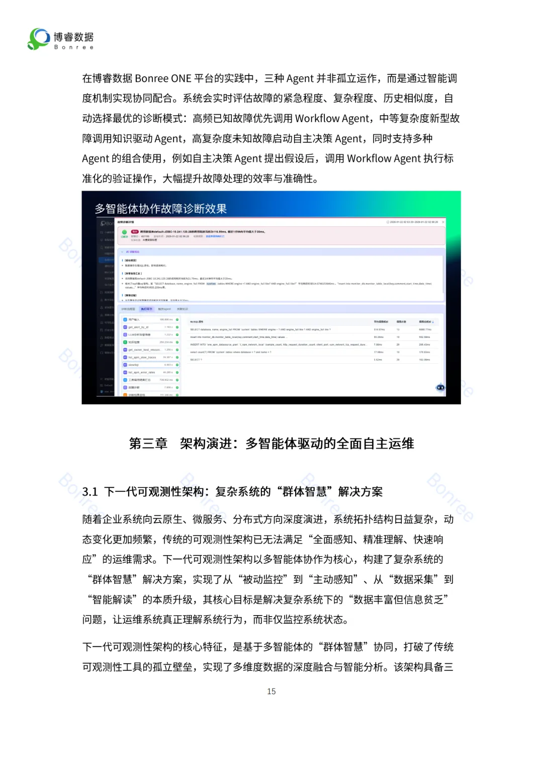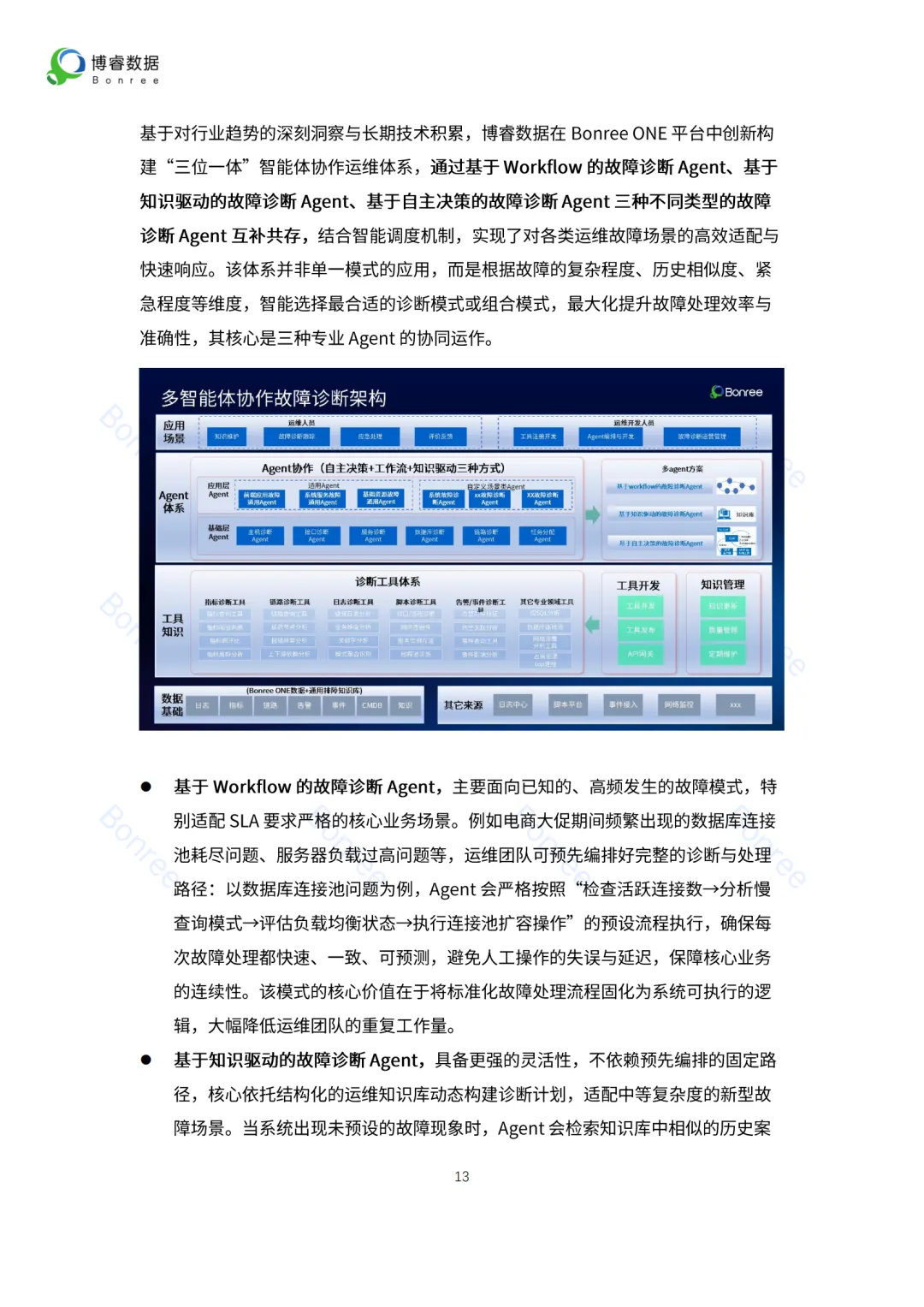 博睿数据在其Bonree ONE平台中提出了创新性的“三位一体”故障诊断智能体架构,针对不同场景灵活适配:
