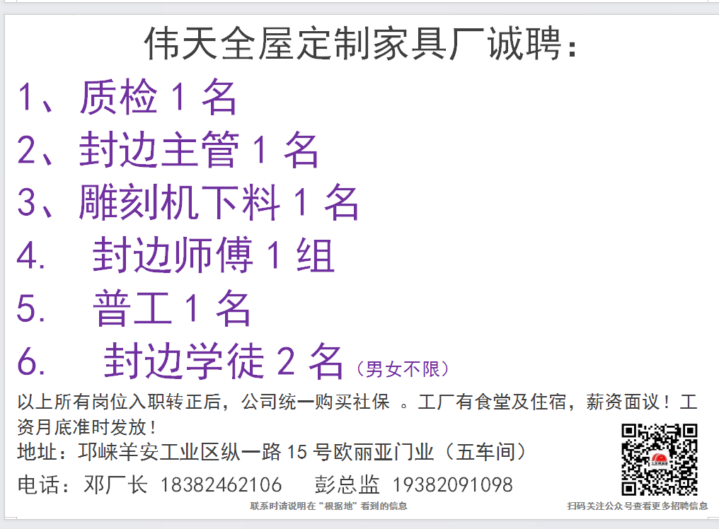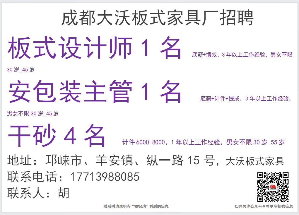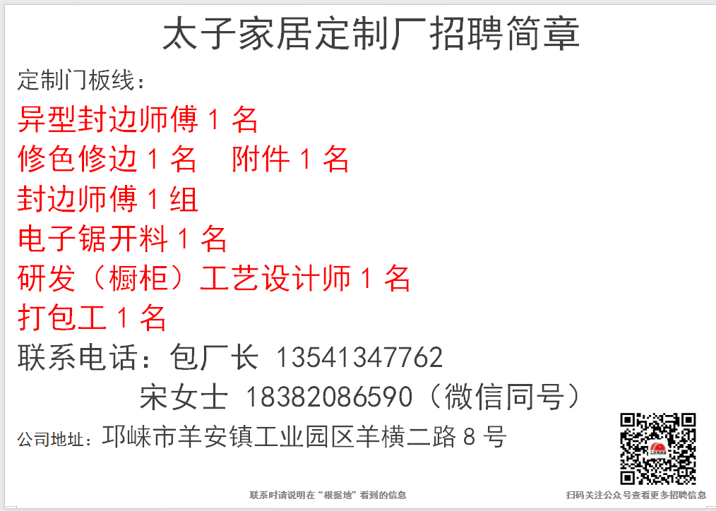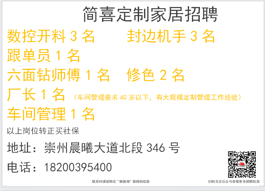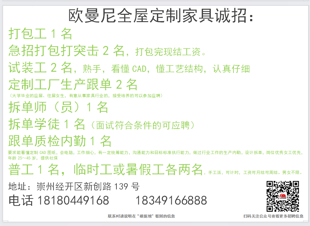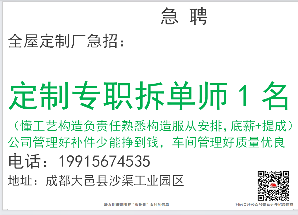 点击上面蓝色文字:根据地家居传媒,关注后,30秒内快速发布招聘信息和求职简历。每天海量招聘信息和求职简历等着你。