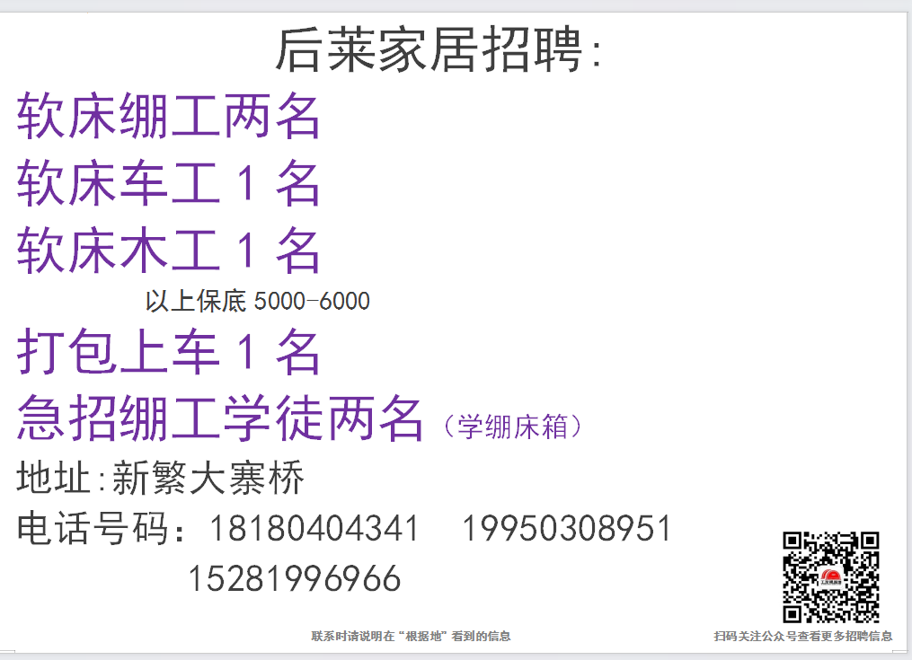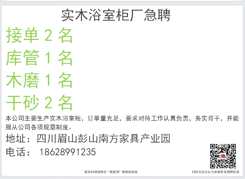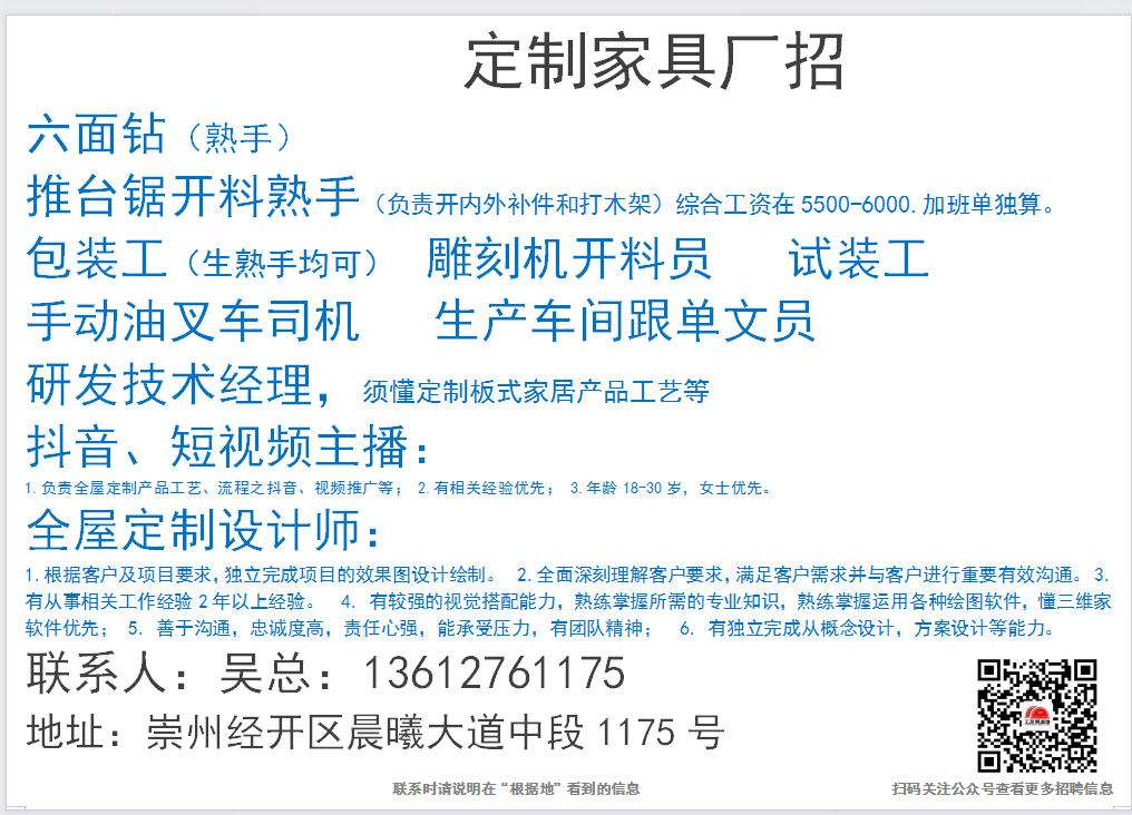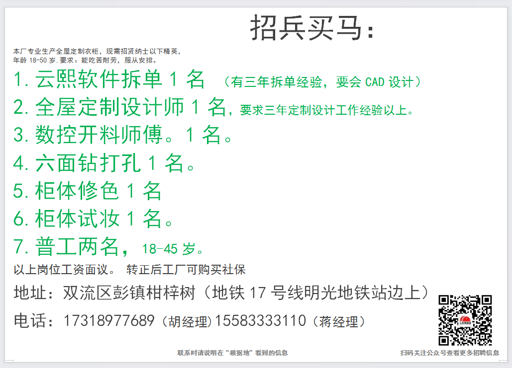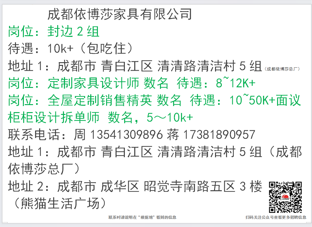点击上面蓝色文字:根据地家居传媒,关注后,30秒内快速发布招聘信息和求职简历。每天海量招聘信息和求职简历等着你。