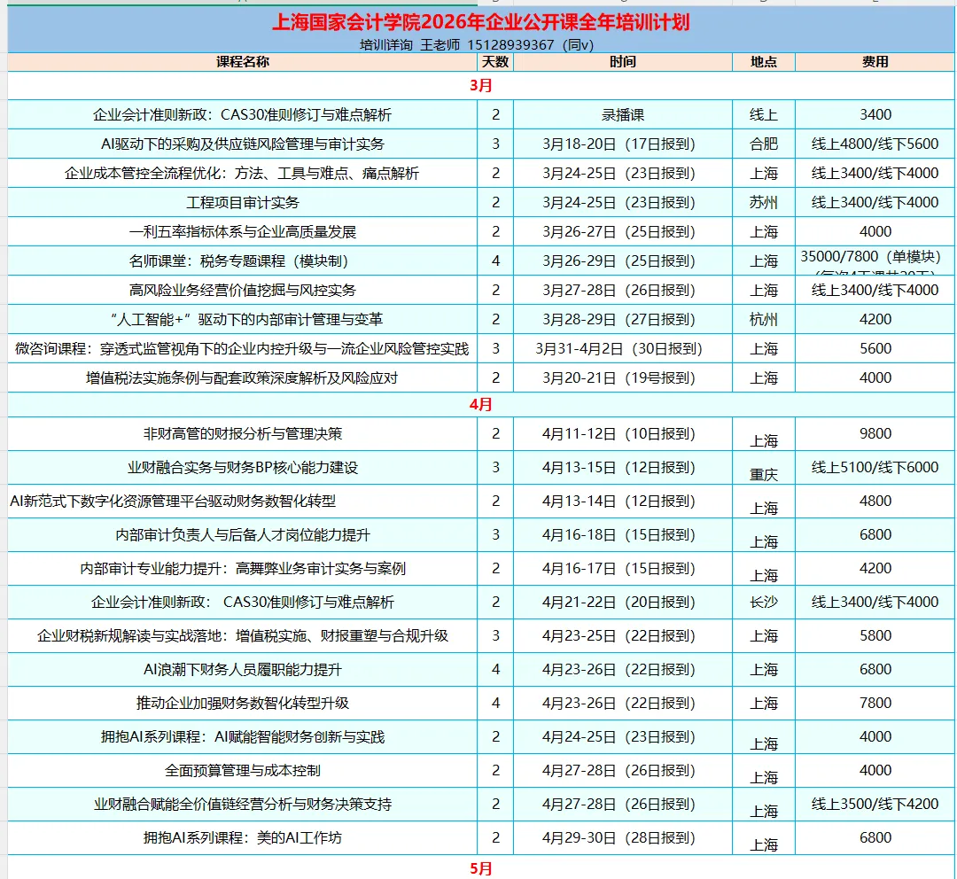 3.费用支付方式:培训费由上海国家会计学院收取,支付宝/微信扫码、汇款。食宿费现场支付。