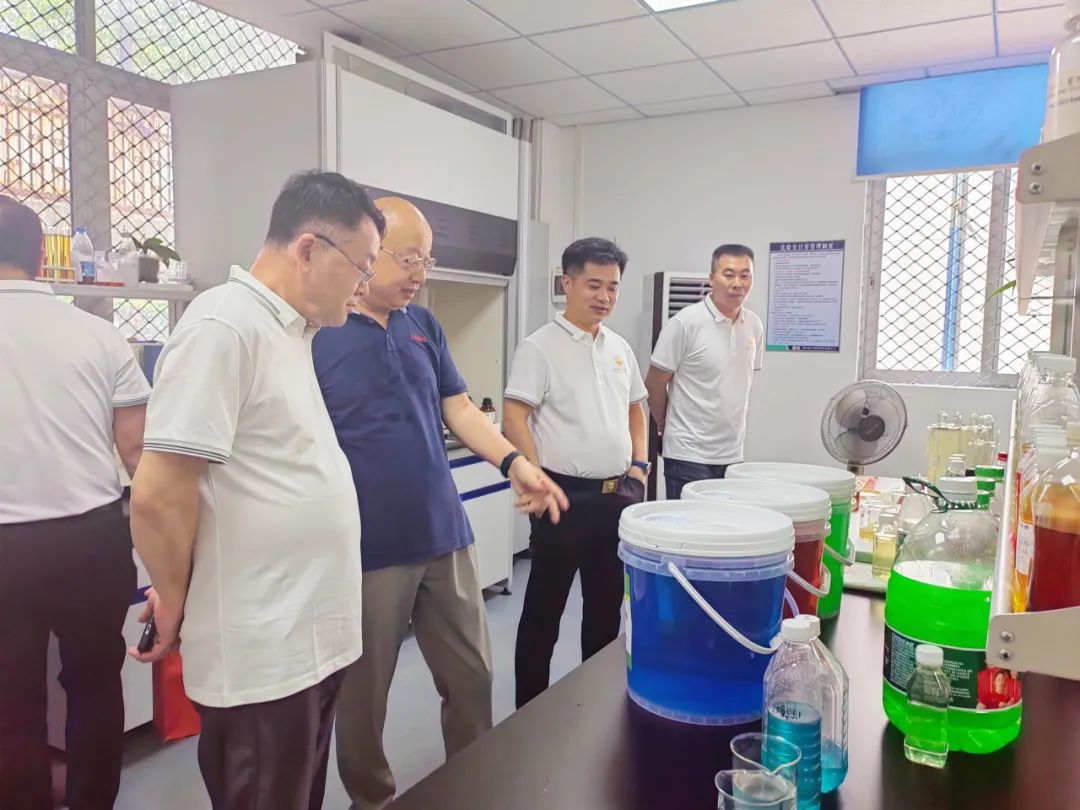 佛山振业润滑材料有限公司董事长、商会会员徐龙生先生热情接待了商会走访人员,并带领走访人员参观了公司的制油工厂。在现场,徐总向大家介绍了加工润滑油的流程与事项,同时还参观了公司关于润滑油的品控实验室、检验实验室。徐总说到:“佛山振业配备了完善的现代精密检验设备,实施严密的品质检测、控制和管理流程,确保每一个环节的质量都能得到有效控制”,让在场人员无一不在感叹“佛山振业”企业的先进性与专业性。
