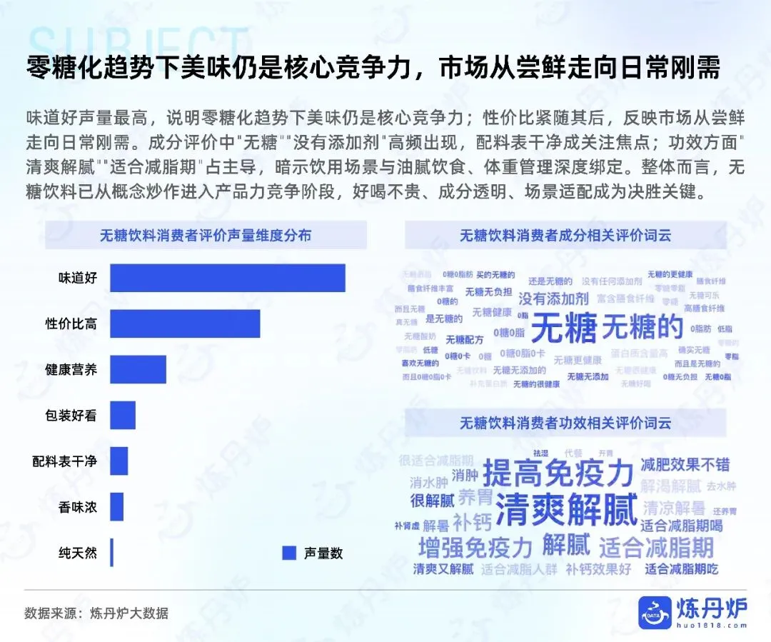 2026年健康饮料市场的竞争本质,是从“减糖减脂”的防御战,升级为“精准养生”的价值战。当97%的消费者在过去一年购买过健康饮料,这个赛道已无旁观者。报告揭示,无糖饮料市场回归理性,碳酸与茶饮占据六成江山;功能性饮料年增速超10%,突破1700亿;而中式养生饮料更迎来爆发式增长,预计2028年破千亿。这意味着“无糖”已成标配,单纯的“减法”已无法构成壁垒。