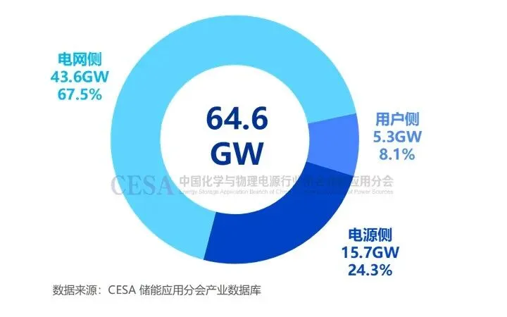 2025年中国新型储能新增装机规模为64.6GW/196.5GWh,与2024年同比增长52%(功率)/79.3%(容量)。