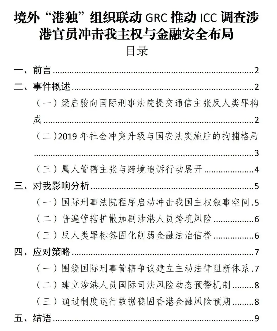 境外GD组织联动GRC推动ICC调查涉港GY冲击我主权与金融安全布局