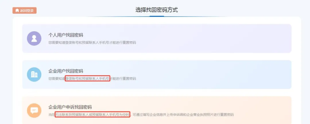 ①登录账号为企业统一社会信用代码,2025年新增企业登录账号和密码,与申报高企的网站账号一致,如企业密码丢失可通过预留手机号找回,如仍无法找回,可自行申诉重置,重置账号为企业统一信用代码。如企业账号有问题请下载操作手册。