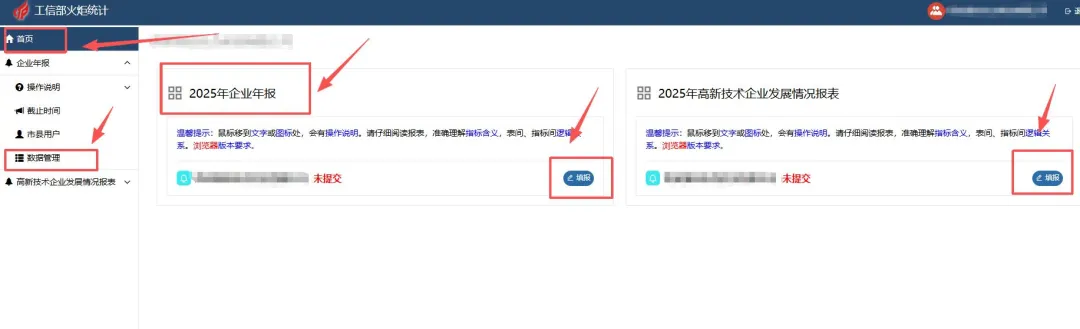 注意报表状态,及时完成填写,检查,提交工作,如退回可点击提交后面的查看图标了解具体退回原因。