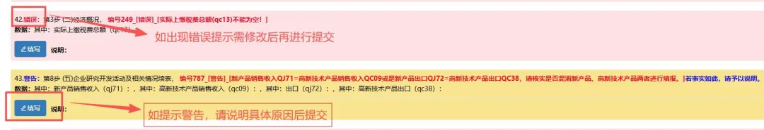 3.填报系统内存在警告的请根据实际情况写好说明,不能简单填写“情况属实”,需写清楚具体理由。