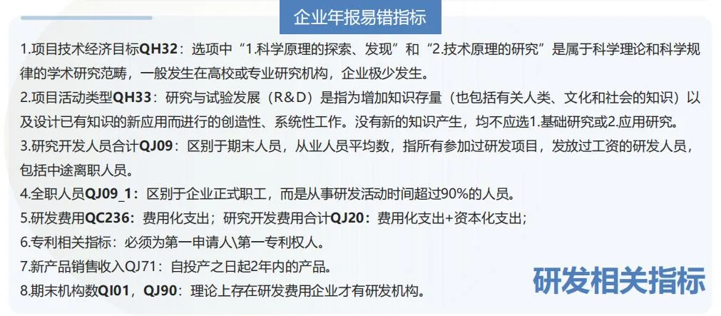 指企业在新知识、新技术、新产品、新工艺等的研究与开发过程中发生的费用化支出,以及计入“管理费用”会计科目的企业自行开发无形资产的摊销。费用化支出主要包括研发活动的人工费用、直接投入费用、用于研发活动的仪器、设备的折旧费、用于研发活动的软件、专利权、非专利技术的摊销费用、新产品设计费、新工艺规程制定费以及其他研发活动相关费用。执行《企业会计准则》的企业,根据会计“利润表”中“研发费用”项目的本年累计数填报。执行《小企业会计准则》的企业,根据会计“利润表”中“研究费用”项目的本年累计数填报。执行《企业会计制度》的企业以及会计“利润表”未列示“研发费用”或“研究费用”的企业,根据会计“管理费用”科目下“研究费用”明细科目的本期发生额,以及“管理费用”科目下“无形资产摊销”明细科目的本期发生额分析填报。
