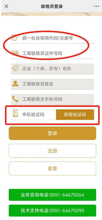 2、注册完毕后,以后每次输入正确的统一社会信用代码/注册号以及联络员证件号码,系统自动带出其余信息,点击“获取验证码”,验证通过后即可快速登录。