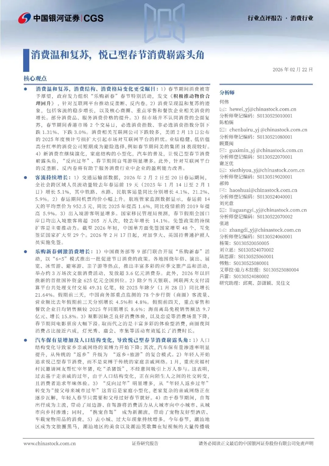 暗号:消费行业点评报告:消费温和复苏,悦己型春节消费崭露头角-260222-银河证券-20页