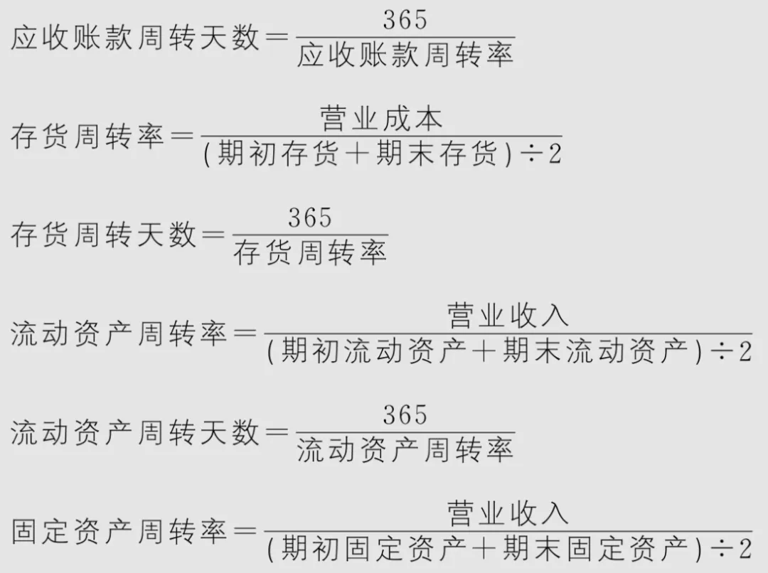 营运能力:企业的经营运行能力,即企业运用各项资产以赚取利润的能力。企业营运能力的财务分析比率为各项资产的周转率,如存货周转率、应收账款周转率和总资产周转率等,以及相对应的周转周期。资产周转率:用营业收入除以某项资产,得到该资产的周转率。