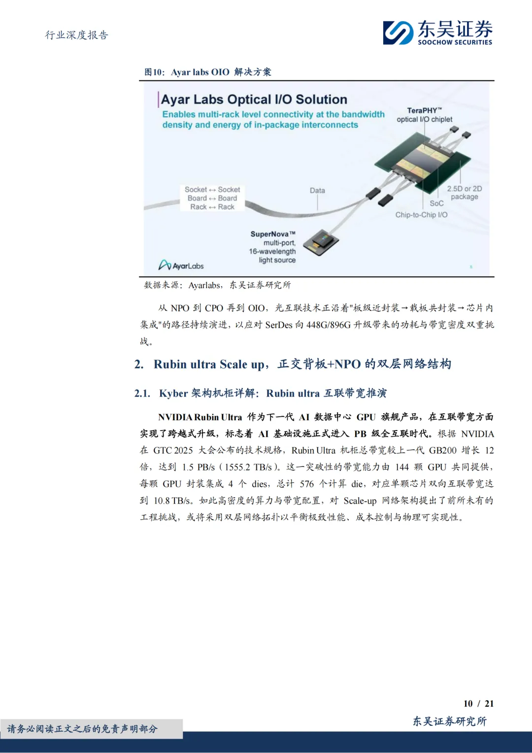 Rubin Ultra机柜有望推动M9材料与NPO光引擎迎确定性增长。RubinUltra机柜以144颗GPU(单颗10.8TB/s双向带宽)构建出了1.5PB/s PB级Scale-up网络,并采用4-Canister双层架构进行Scaleup组网。第一层通过正交背板实现Canister内部无阻塞交换,考虑到224GSerDes对信号完整性的严苛要求,正交背板必须采用M9级超低损耗CCL材料;第二层采用3:1收敛设计组网,通过72颗NVSwitch与648颗3.2TNPO光引擎完成跨Canister光互连,GPU与光引擎配比高达1:4.5。