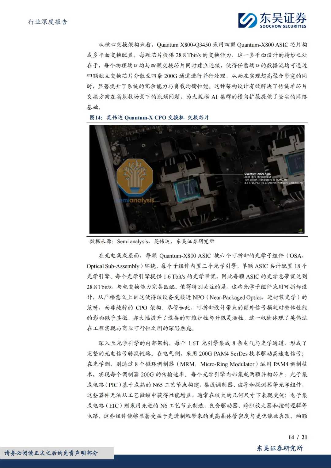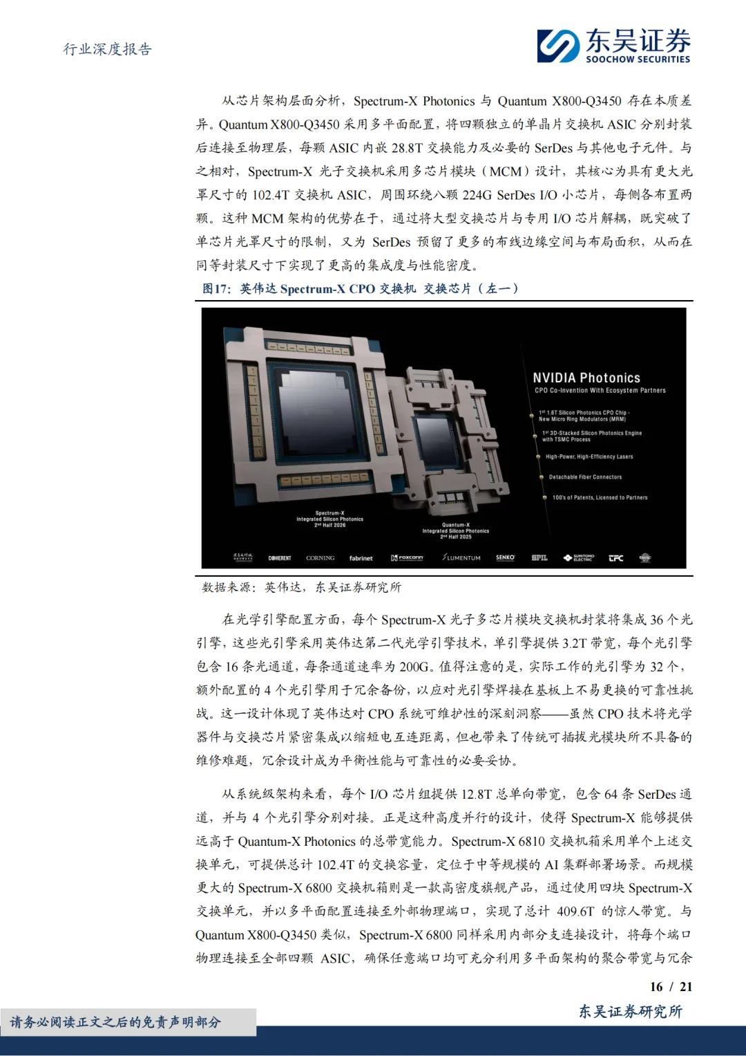 CPO交换机规模放量在即,核心供应商迎增长机遇。英伟达CPO交换机产品矩阵抢先卡位,构筑AI网络新基建核心壁垒。Quantum X3450作为全球首款量产CPO交换机,以115.2T带宽与可拆卸光引擎设计树立技术标杆;Spectrum X平台(6810/6800)更以102.4T-409.6T梯度化带宽覆盖以太网生态,2026年量产后将完善从InfiniBand到以太网的全场景布局。CPO交换机规模化放量在即,光引擎、外部激光源、光纤连接单元等核心零部件需求将迎来爆发式增长,具备供应链卡位优势的国内龙头厂商有望率先受益,建议重点关注相关供应商投资机遇。