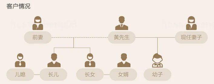 黄先生现年65岁,是一位成功的企业家,对于商业经营具有超前的战略眼光和决策能力。黄先生有两段婚姻,和前妻生育的两个子女均已成家,长子自己创业做公司,经营状况不太稳定,长媳是全职太太;长女和女婿都是公立大学的教师。长子长女与黄先生关系不错,但都不参与黄先生的公司经营。黄先生的现任妻子36岁,生育了一个6岁的儿子,现任妻子在黄先生的公司担任重要职务。