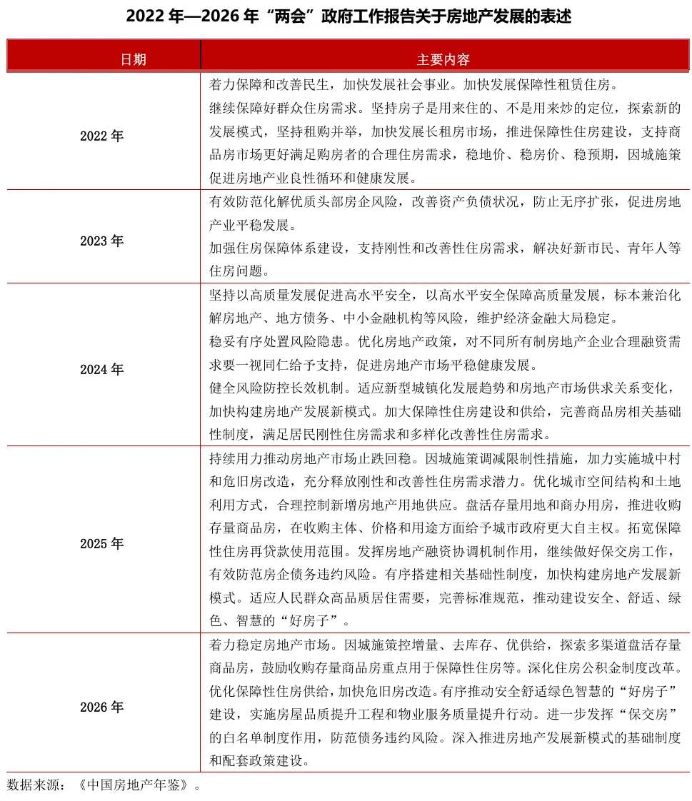 2026年政府工作报告中的房地产政策,是立足当下风险化解、又着眼长远模式重构的系统性部署。短期看通过强有力的行政与金融手段为市场托底,保障民生稳定;长期通过供给侧改革和“好房子”建设,引导整个行业走向更健康、更可持续的发展轨道。对于房企而言,适应新周期、提升产品力、维护财务安全是生存与发展的关键;对于购房者而言,市场的稳定和产品品质的提升,将带来更优的居住选择。实现稳定房地产市场的目标,需要各项政策协同发力、精准落地,同时居民收入预期和房价预期根本性改善也是持续回稳的关键。
