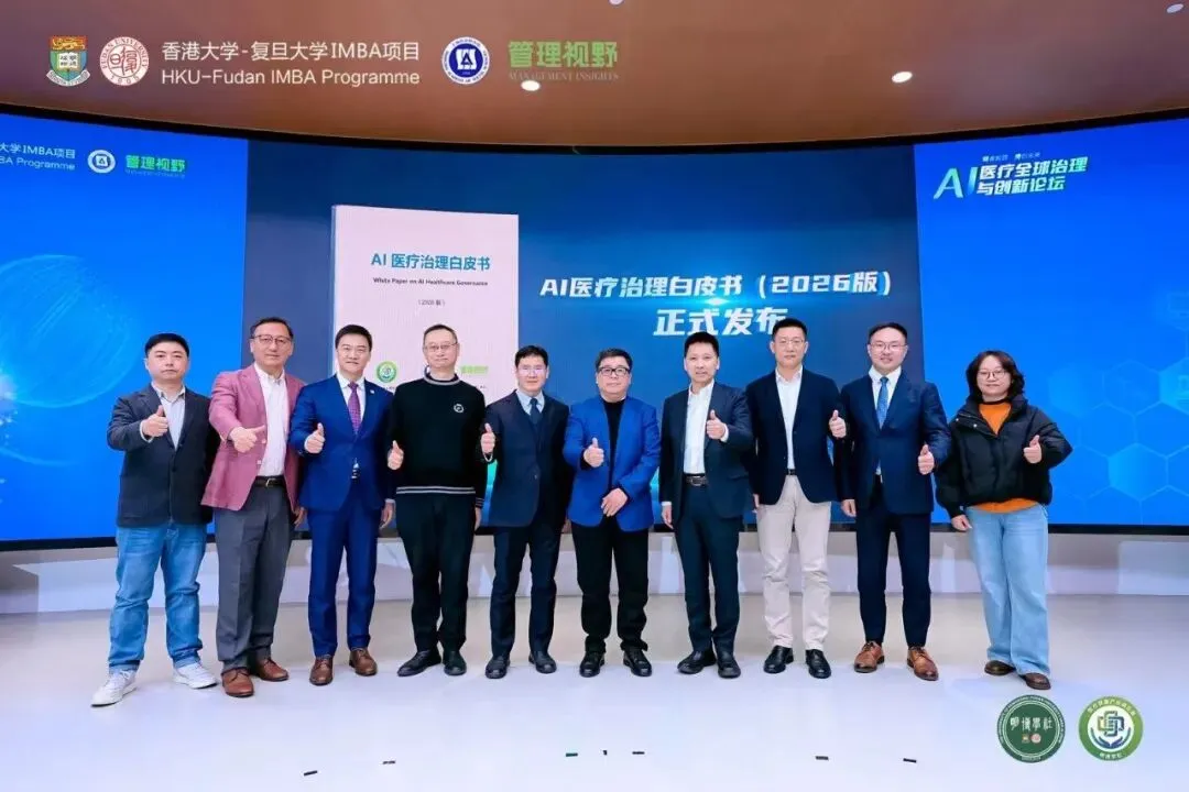 由港大-复旦IMBA项目、港大-复旦IMBA项目明博医疗健康产业俱乐部、上海社科院信息研究所与《管理视野》联合编撰,上海社科院信息研究所数字经济研究室主任赵付春团队主导的《AI医疗治理白皮书2026》正式发布。