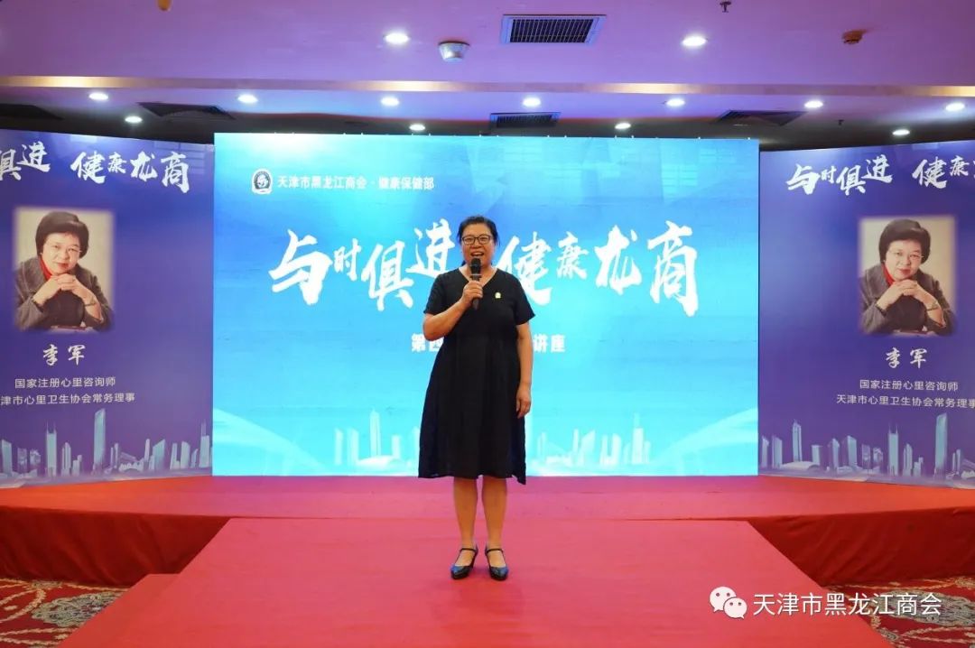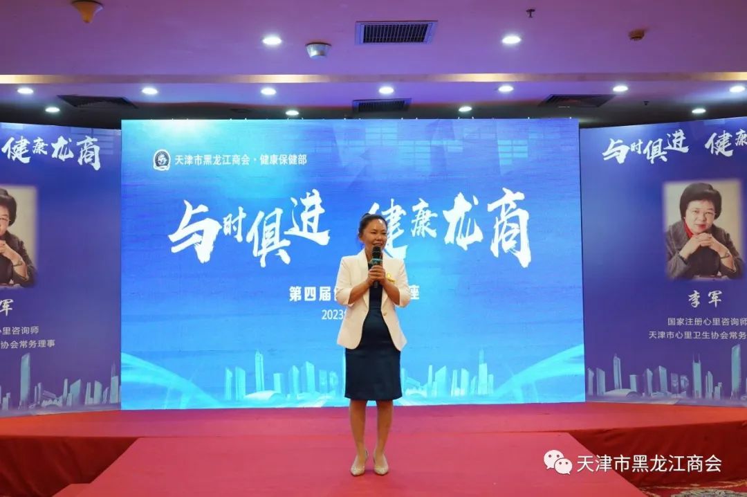 天津龙商党支部书记、会长代表龚慧杰致辞。她表示,今天荣幸倾听健康保健部特别邀请的李军老师来为大家讲解心理健康问题。此次活动的主题“与时俱进 健康龙商”,正是我们天津龙商一直为之努力的目标,不仅要让我们的会员企业家身体健康,更要让我们的企业发展保持健康,同时希望天津龙商在徐景海会长的带领下一直持续的健康发展下去。