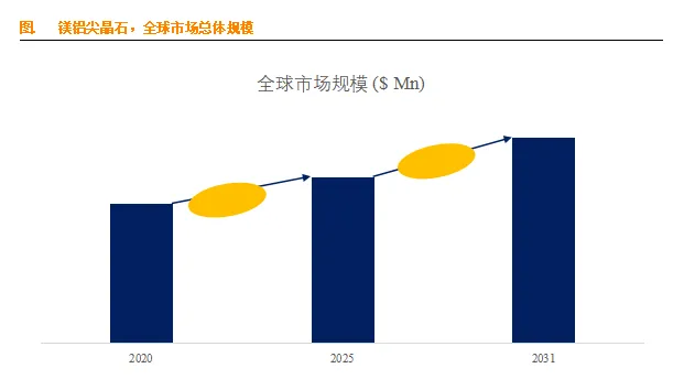 绿色化与无铬化替代机遇:全球耐火材料行业正朝着无铬化、低碳结合和绿色制造的方向演进。镁铝尖晶石作为提升材料强度和抗侵蚀能力的关键组分,有望在替代传统的含铬耐火材料(如镁铬砖)过程中获得显著的增量空间,顺应环保政策趋严的趋势。
