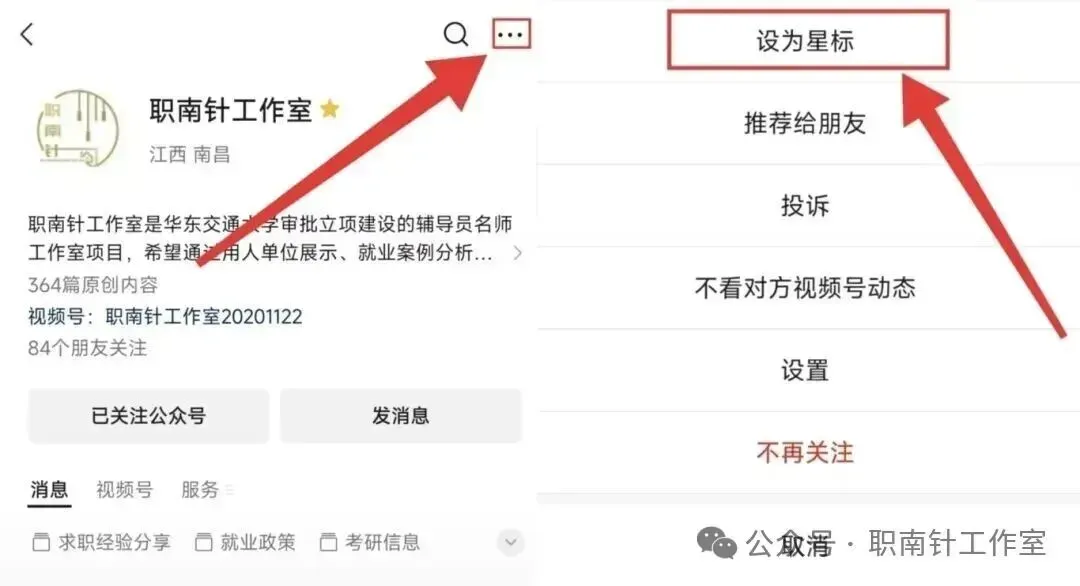 PS:公众号修改了推荐机制,不再按发表时间推送,将「职南针工作室」设为星标,能第一时间收到求职、就业、考研等干货内容,未设星标会大幅延迟接收哦。