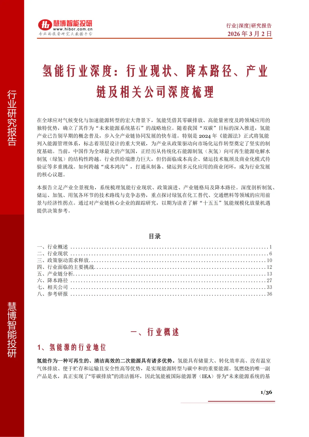 报告199| 氢能行业深度:行业现状、降本路径、产业链及相关公司深度梳理