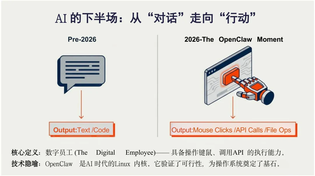 导读:报告解析了这一 2026 年极具活力的开源 AI 代理生态的发展全貌。OpenClaw 定位于本地优先、单用户、自托管模式,秉持隐私至上核心理念,完成多平台集成与技术架构的成熟迭代,拥有范式重塑、持久化、自我信息等多重核心特点,从聊天机器人进化为可自主执行的自治实体。其技术架构构建起硅基员工全景,实现思考、交互、执行、记忆的完整闭环,同时催生出 LobsterAI、Kimi Claw 等多款本土化同类工具,各有技术侧重与应用局限。OpenClaw 技能生态形成多层混合结构,伴随生态发展出现恶意技能攻击等安全风险,行业逐步建立安全过滤与精选机制,不同用户群体可适配差异化生态工具。报告还提出 OpenClaw 的五层变现路径,从技能交易到蜂巢思维,重构一人公司经济模型,实现低边际成本与团队级产出。其未来发展面临记忆断层、安全隐患等挑战,核心进化方向为正向 Token 流驱动的自我优化。报告预判其将走向人机共生或纯硅基自治,2028 年或将出现关键发展分岔,最终有望构建起具备经济主权的硅基经济体。
