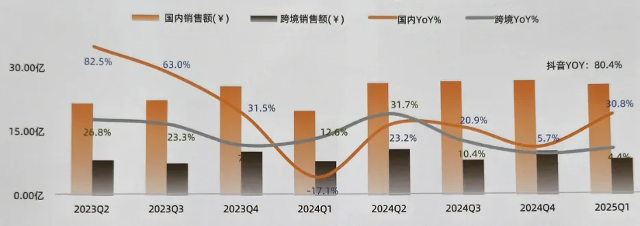 益生菌市场跨境VS国内销售额占比,2025Q1
