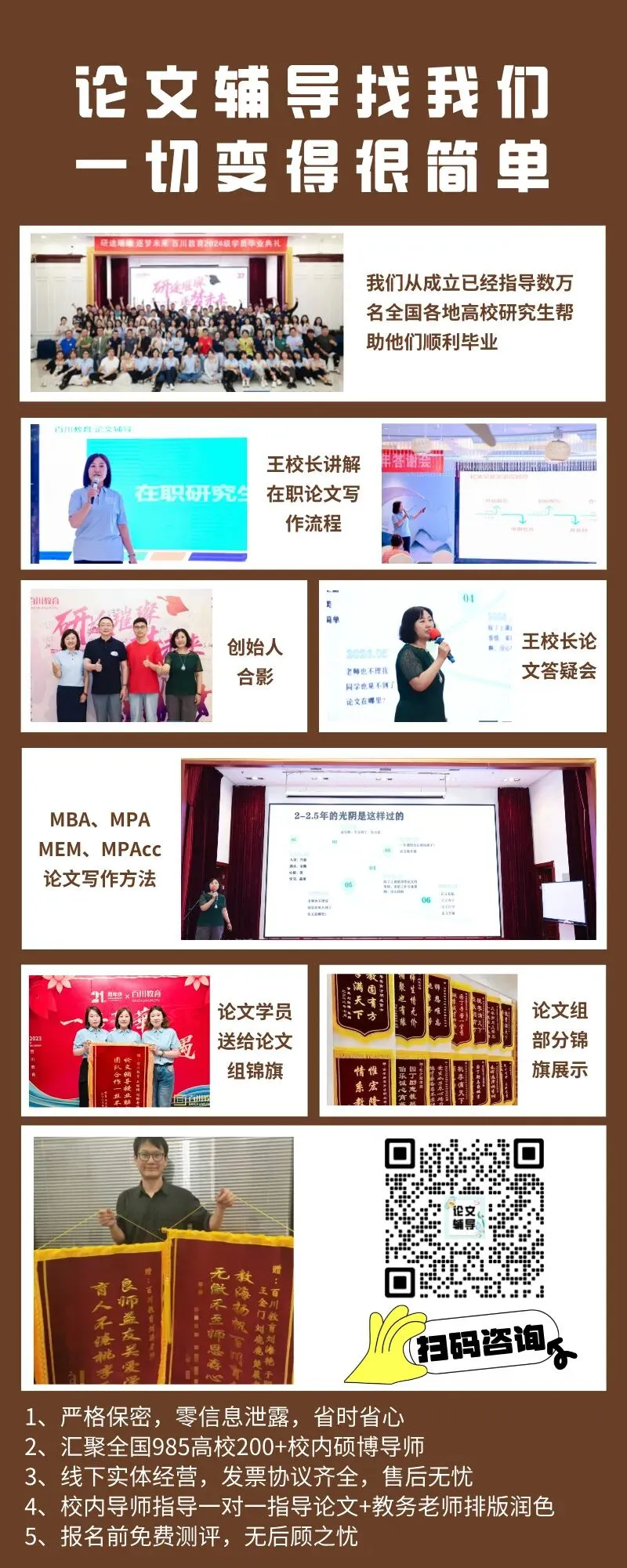 一站式论文写作指导,精选高校名师进行一对一指导,论文导师包括清华、北大、央财、天大等顶级学府导师,特别针对天津大学、南开大学等全国各大知名院校本科、硕士的毕业论文写作,涉及专业包括金融、MBA、MPA、MPAcc、MEM、EMBA等热门专业选题、开题、中期答辩、论文数据模型、后期答辩等专业指导服务。如果你有论文难题,添加下方老师微信预约论文写作导师1vs1服务。