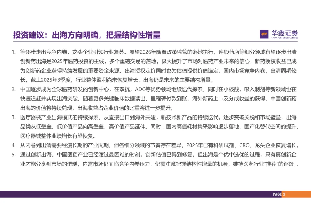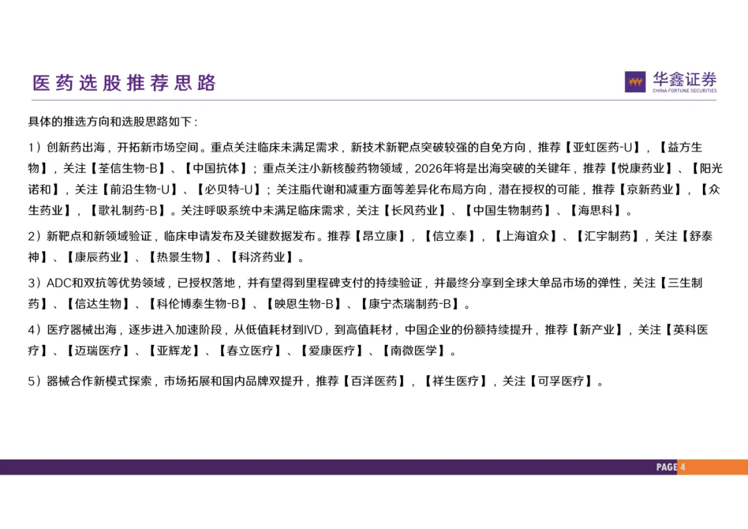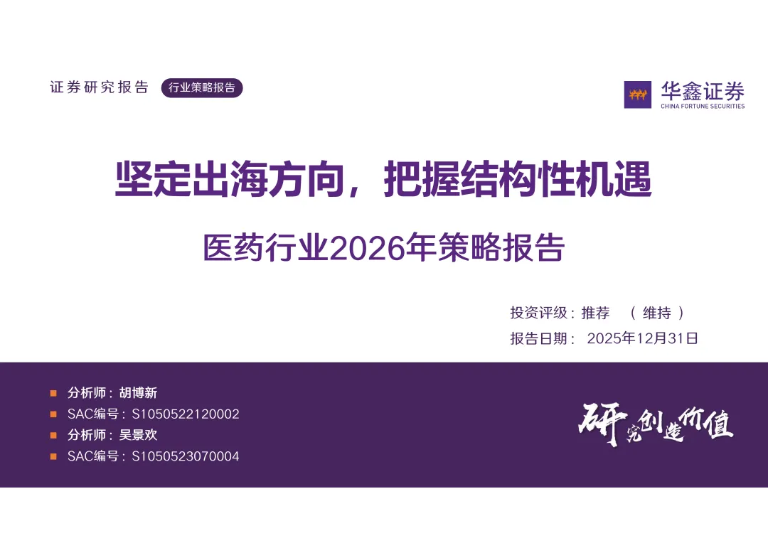 关注我们,后台回复“202603062”就可以获取《华鑫证券:医药行业2026年策略报告:坚定出海方向,把握结构性机遇》(完整版) 的全文下载链接。