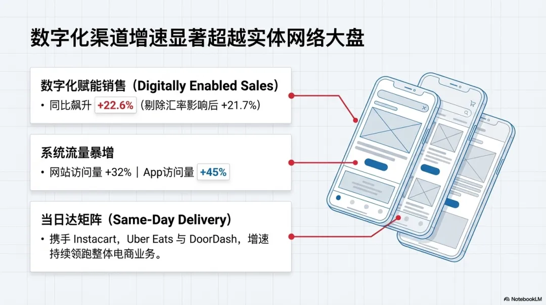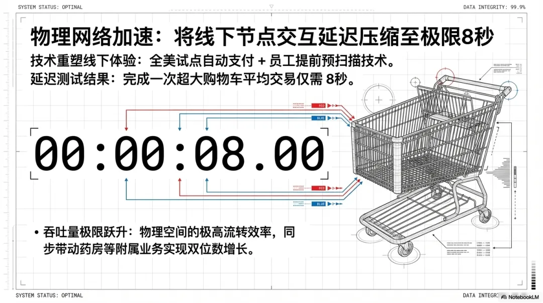 这不是简单的“扫码更快了”,而是意味着线下零售最关键的一个瓶颈——结账吞吐效率——正在被技术重新定义。再叠加App提前支付,门店整体运营效率被进一步拉高。财报还提到,它的药房业务本季度实现了双位数增长,这同样和效率提升、用户体验优化密切相关。