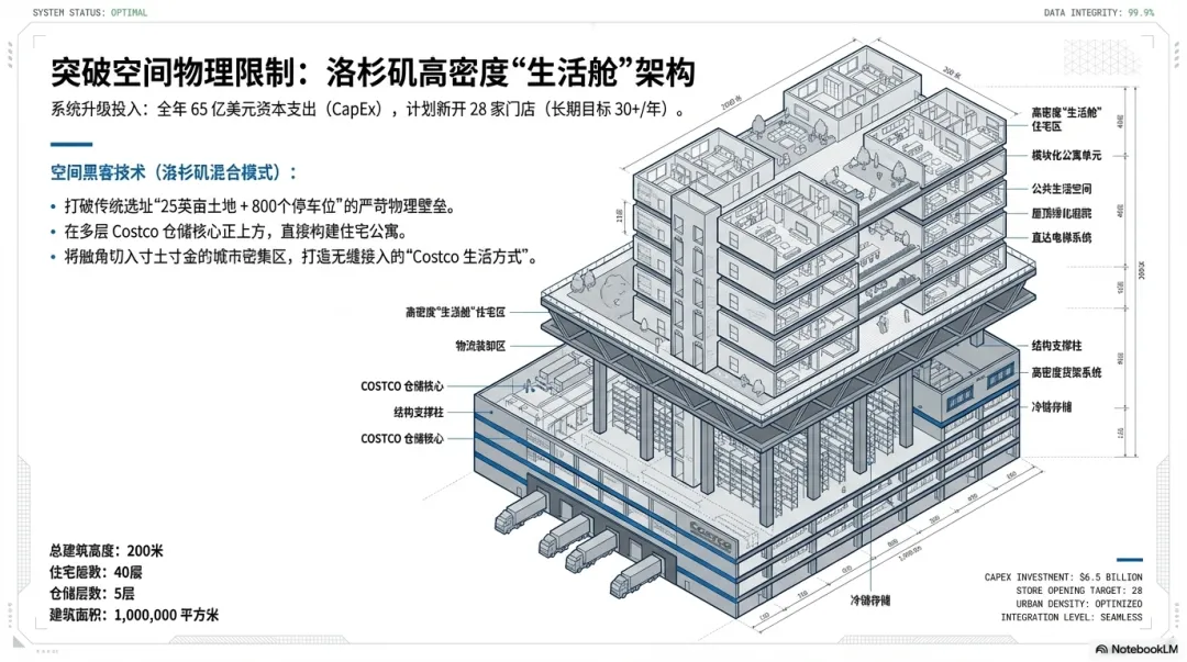 而“底层仓库+上层公寓”的高密度混合模式,相当于直接突破了这个限制。它让Costco得以进入过去根本无法进入的城市密集区,把自己的触角真正伸到核心城区。