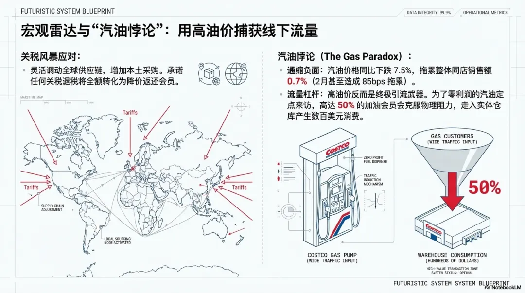 所以我们会看到,它一边用数字化吸引更年轻的用户,一边又把仓储超市开进洛杉矶这样的城市核心区;它一边使用AI提升效率,做推荐、做零售媒体,一边又把赚到的钱重新拿去降价;甚至连高油价这样本来让消费者头疼的事情,最后都能被它转化成门店引流工具。